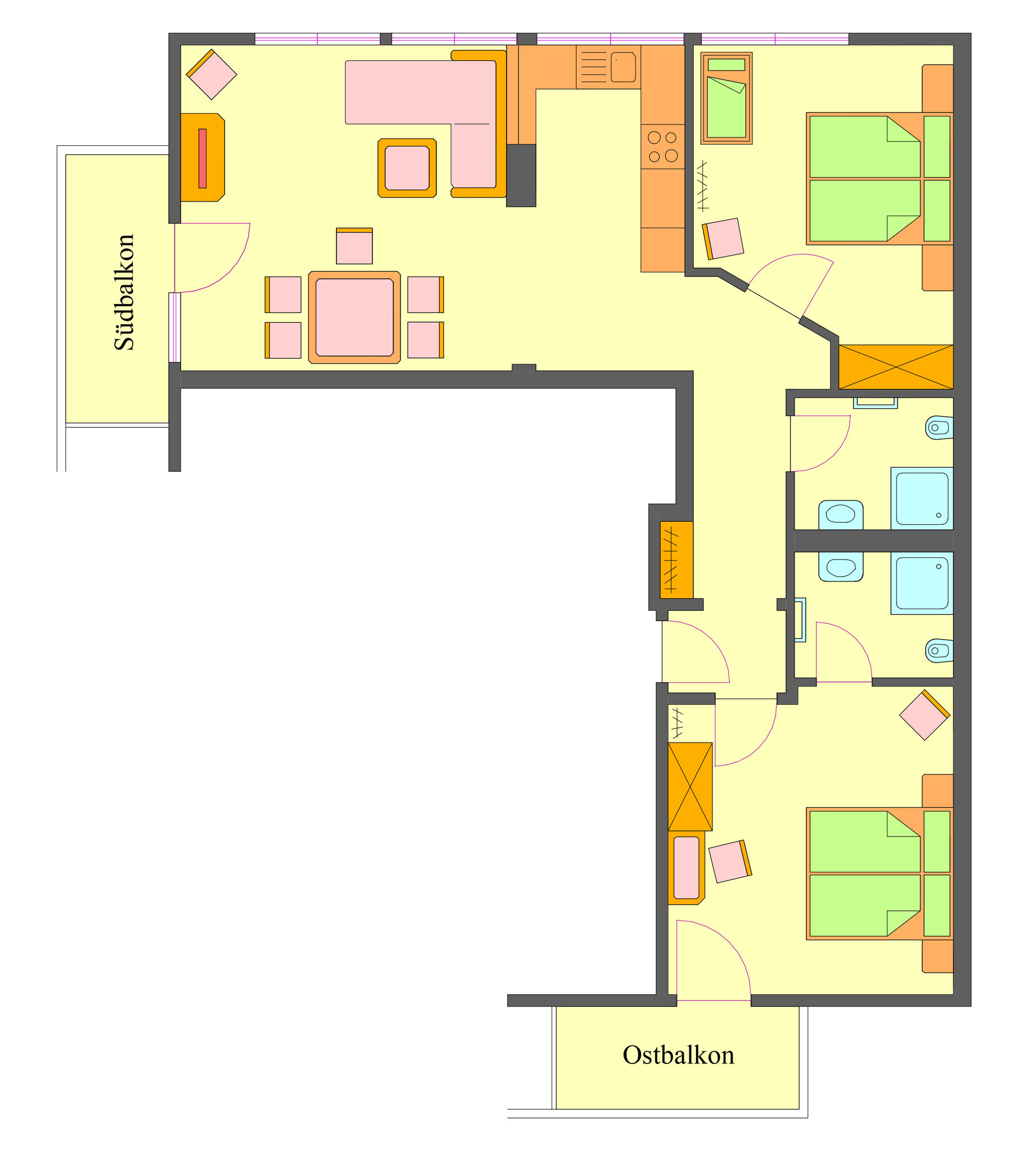 - Süd- und Ostbalkon (oben Beispielbilder)
